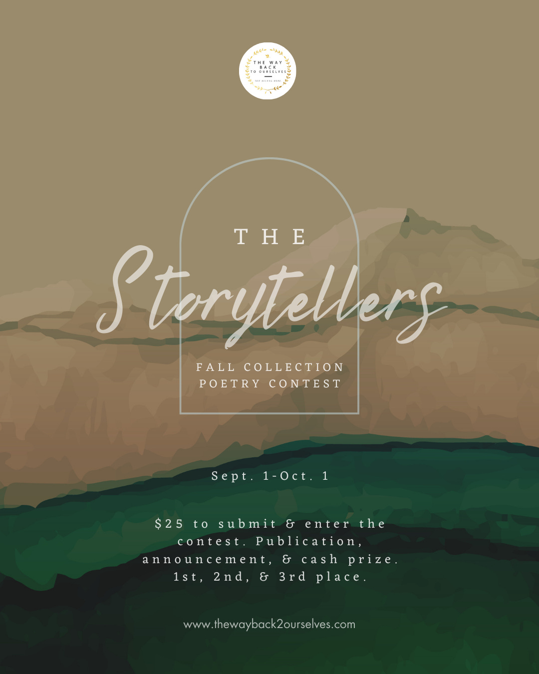 We are also excited to announce our Storytellers Poetry Contest that is happening in conjunction with the fall journal. There’s a cash prize! You can learn about all of the details HERE.